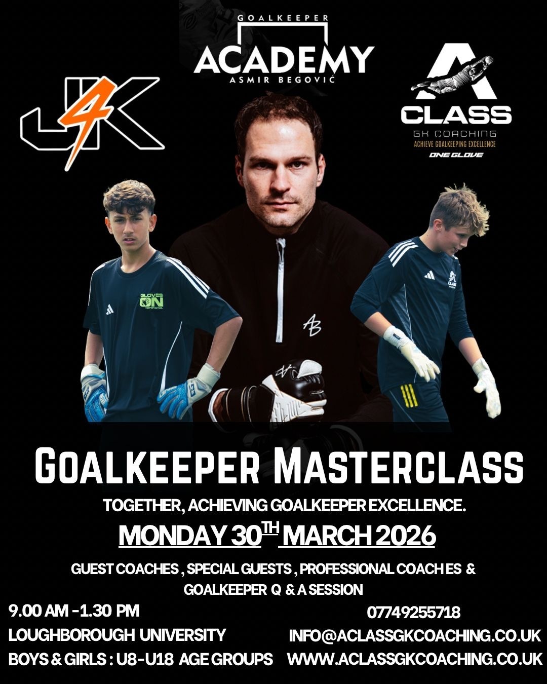 A Class GK Coaching, J4K, and the Asmir Begović Goalkeeping Academy are proud to present our biggest goalkeeper masterclass to date.